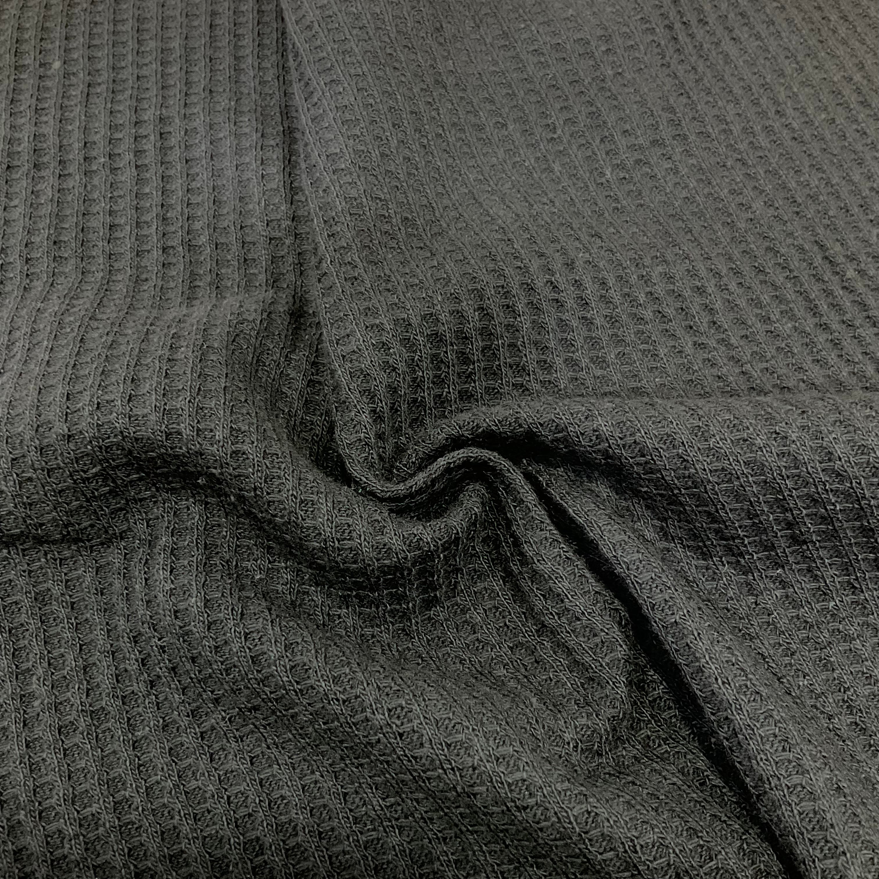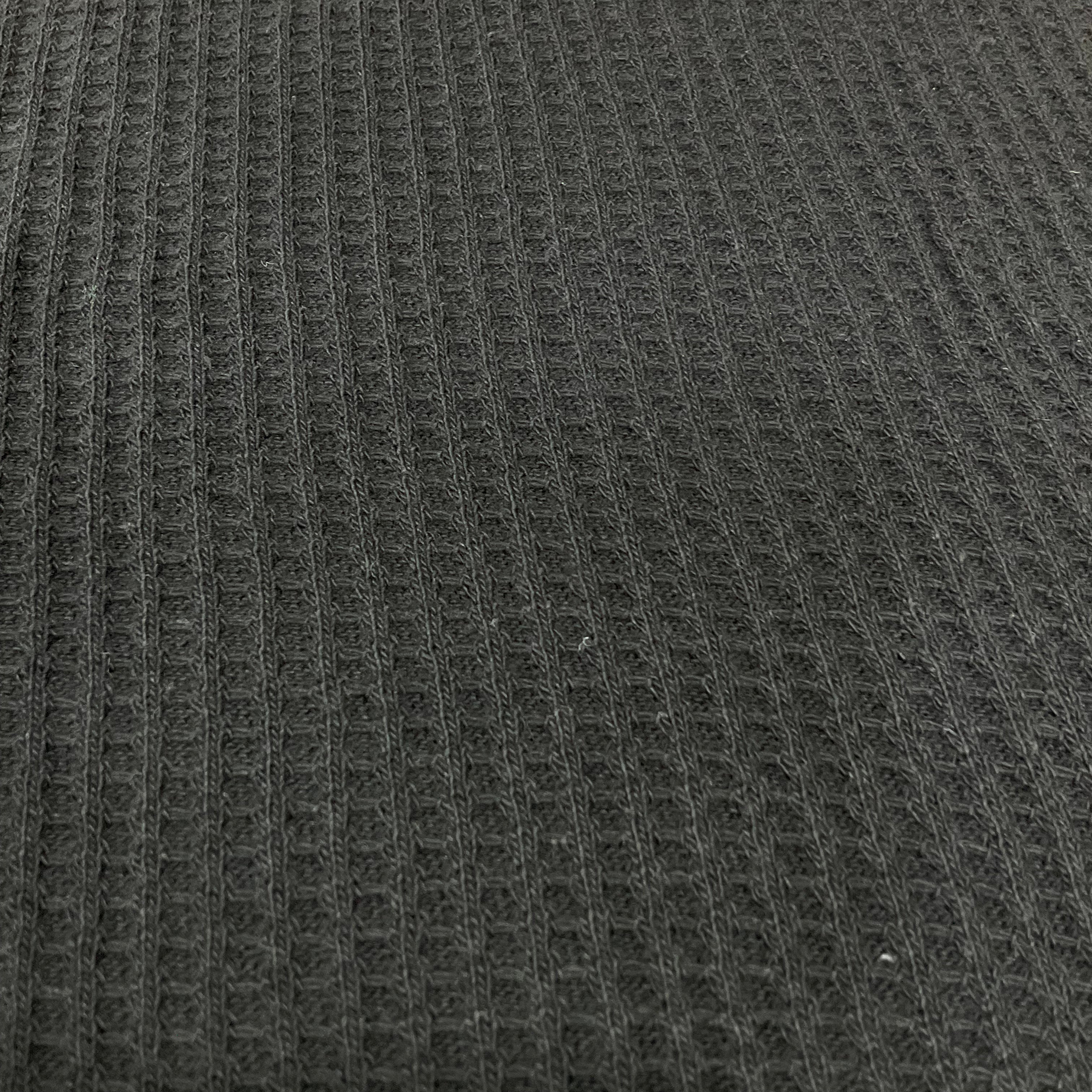 Waffle weave is a fabric with textured squares that make this cotton fabric look just like the popular breakfast food it’s named after. Although it can’t be eaten, it can keep you warm, which is why it’s a staple in winter clothing