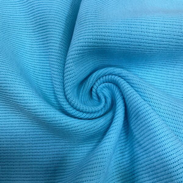 Ribbing is a type of knit style, and the rib is a fabric which is made by this technique. It is a type of fabric that is made by using two needles to make a vertical textured line. It has good stretchability and is stiffer than a jersey. Also, stretching recovers its original shape and doesn’t curl up.It is popular for infant wear, tops, sweaters, and jackets.