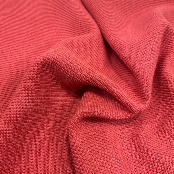 Ribbing is a type of knit style, and the rib is a fabric which is made by this technique. It is a type of fabric that is made by using two needles to make a vertical textured line. It has good stretchability and is stiffer than a jersey. Also, stretching recovers its original shape and doesn’t curl up.It is popular for infant wear, tops, sweaters, and jackets.