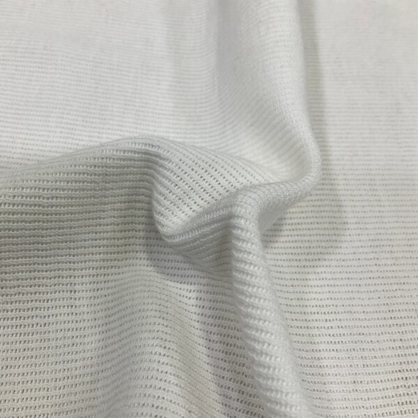 Ribbing is a type of knit style, and the rib is a fabric which is made by this technique. It is a type of fabric that is made by using two needles to make a vertical textured line. It has good stretchability and is stiffer than a jersey. Also, stretching recovers its original shape and doesn’t curl up.It is popular for infant wear, tops, sweaters, and jackets.