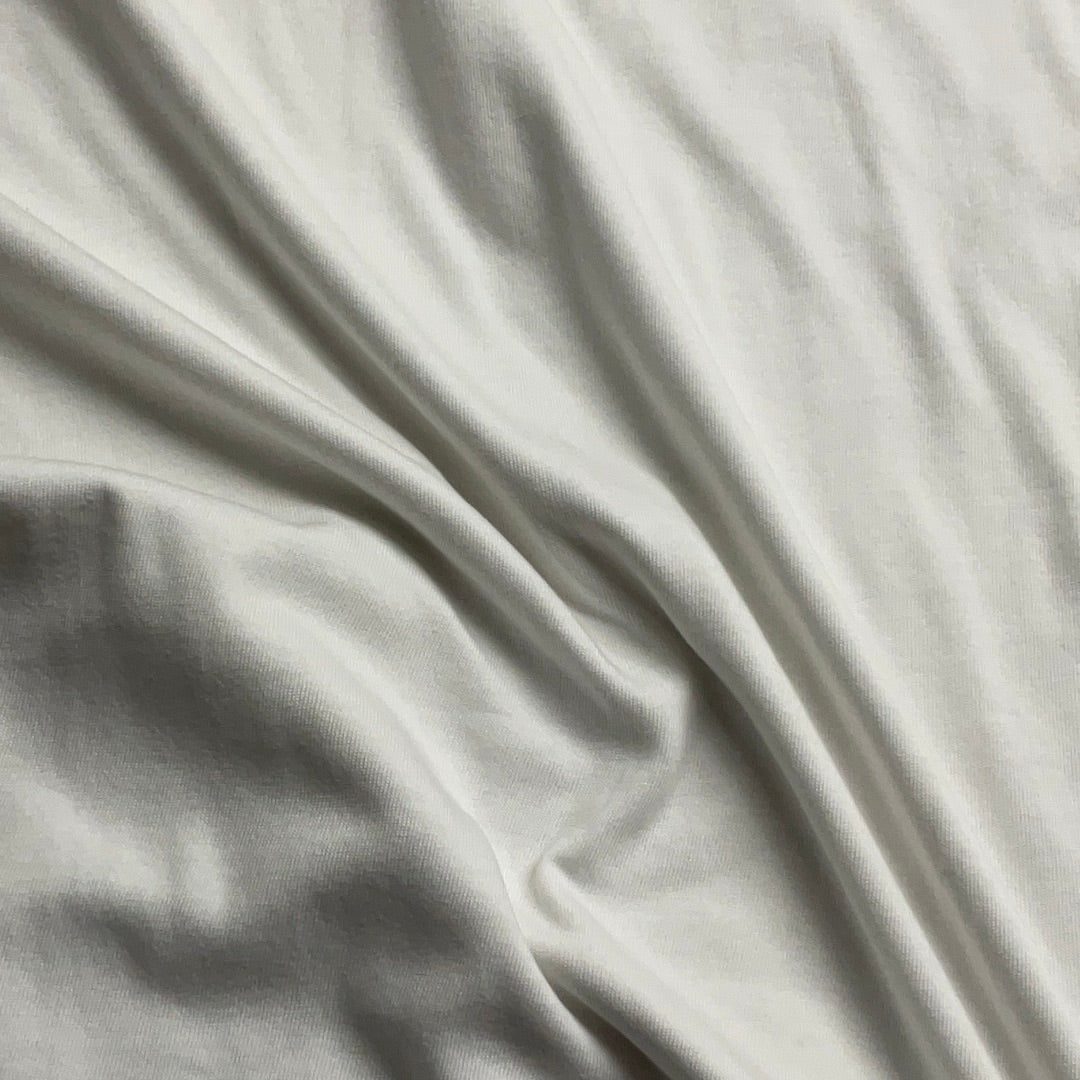 Single Jersey cotton is a type of knitted fabric known for its soft, comfy feel and aesthetic, The textile is also notably stretchy while traditional cotton doesn’t have this flexibility, the knitting technique gives it an elastic quality, even without blending synthetic fibers like elastane or spandex. It is soft, stretchy, naturally absorbent, breathable, and wrinkle-resistant.
