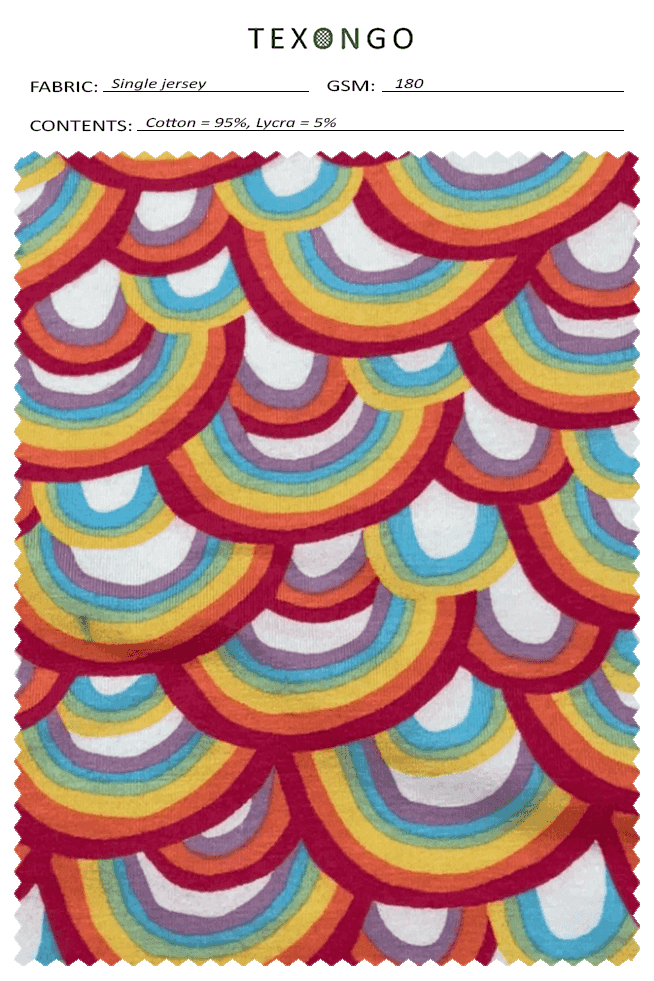 Cotton Lycra Single Jersey is made by plating spandex combined with cotton yarn in a circular knitting machine. It has much more capable regarding its original shape after stretching as compared to only cotton yarn fabric.