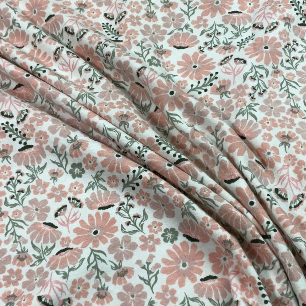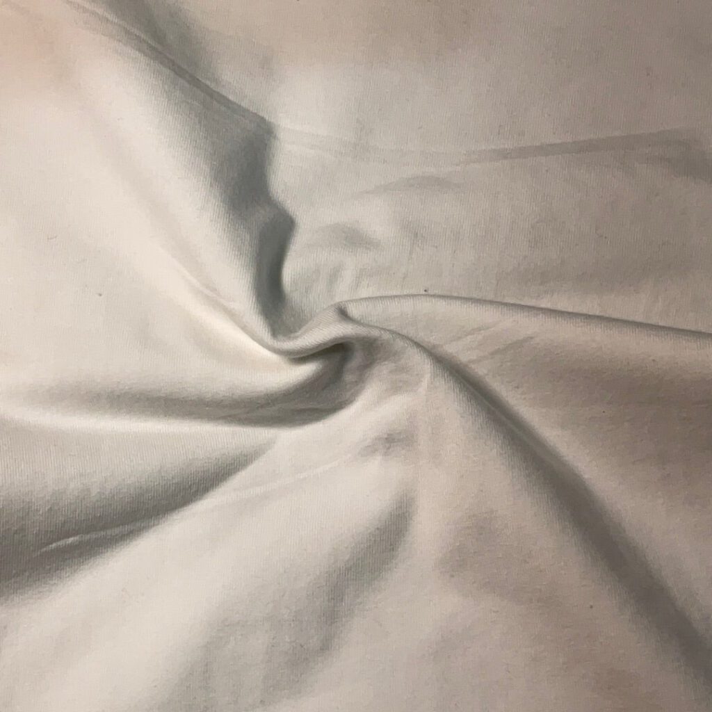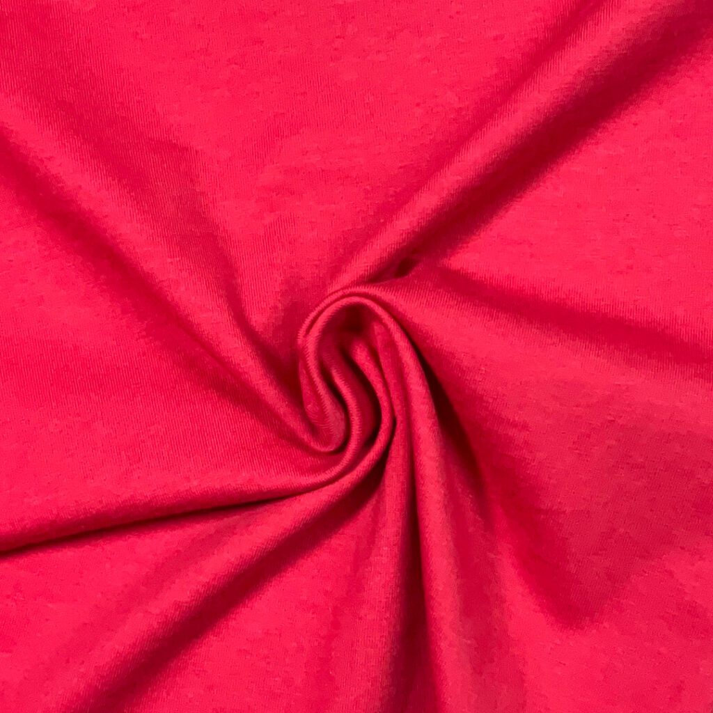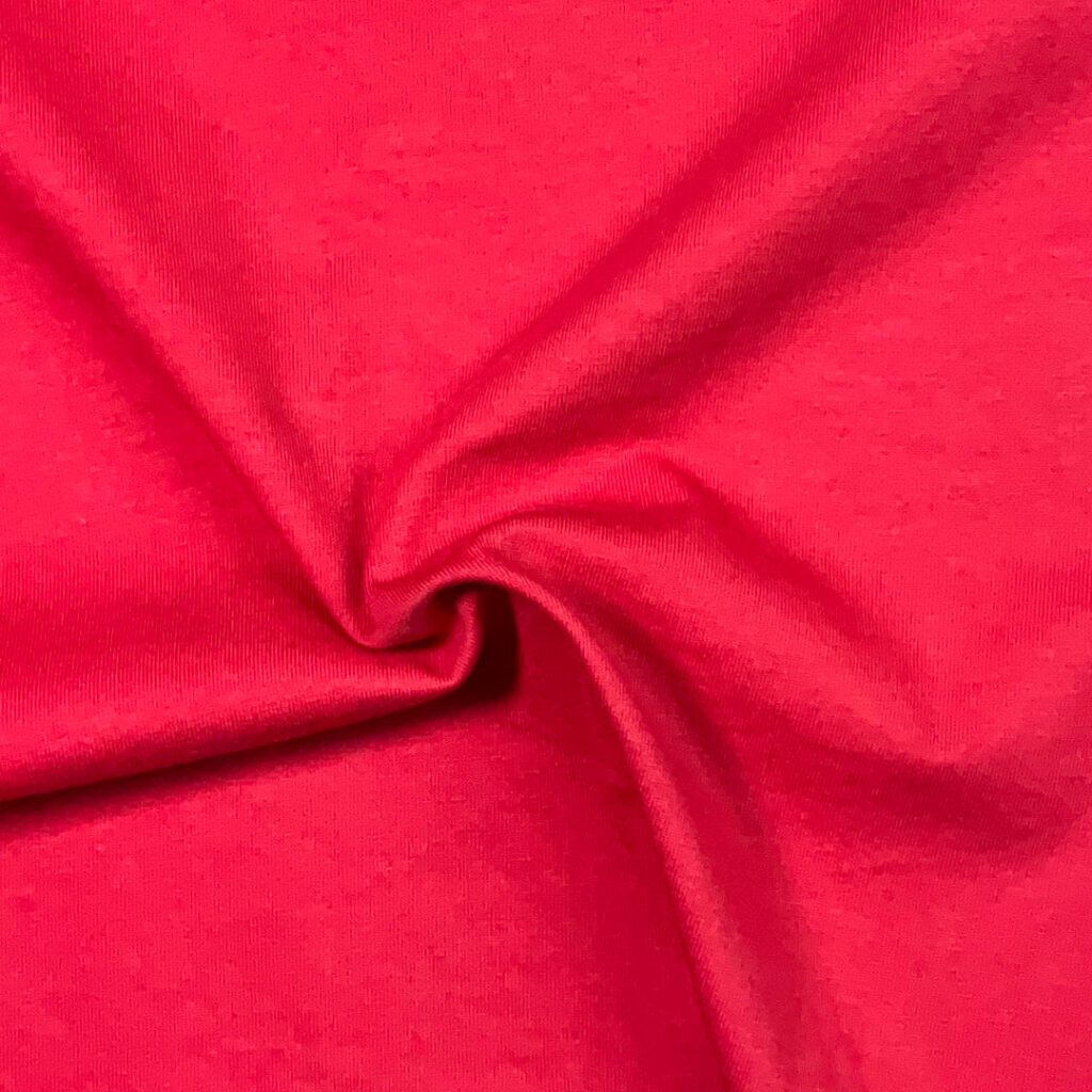 A soft, stretchy, 95% cotton, 5% spandex fabric makes up the fabric. A medium weight basic stretch cotton ideal for t-shirts, intimates, loungewear, and baby apparel, this cotton falls between Modern Jersey and thick Organic Cotton Knit.