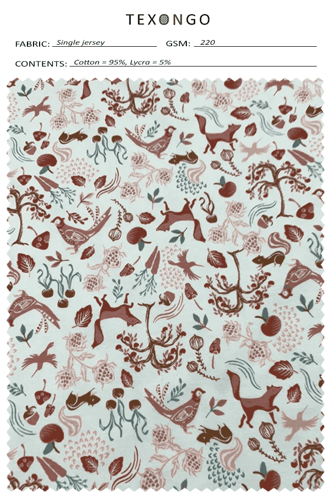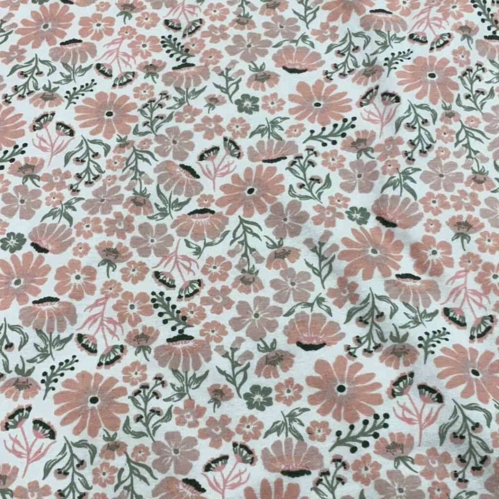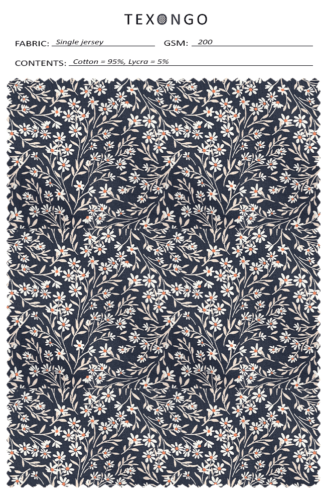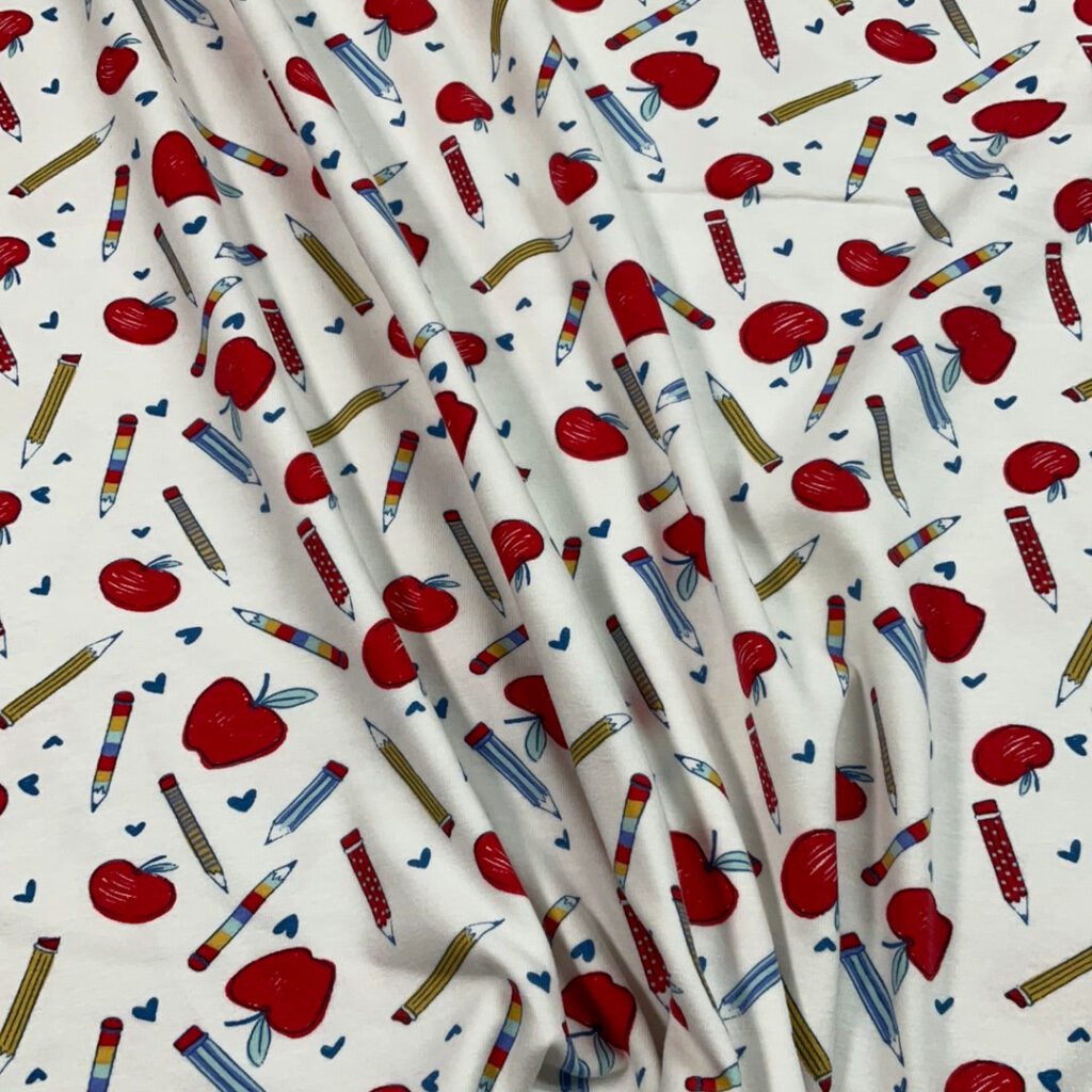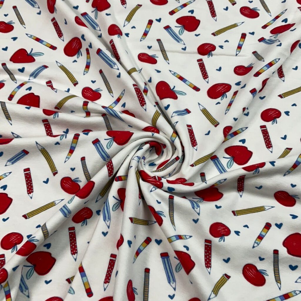 A soft, stretchy, 95% cotton, 5% spandex fabric makes up the fabric. A medium weight basic stretch cotton ideal for t-shirts, intimates, loungewear, and baby apparel, this cotton falls between Modern Jersey and thick Organic Cotton Knit.