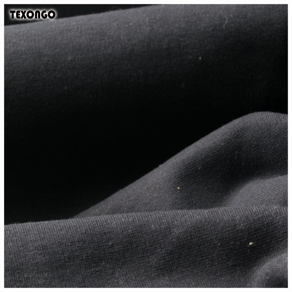 It is a knitted fabric made from cotton and synthetic blend. It is warm, flexible, stretchy, and insulating making it best suitable for your winter wardrobe. Its extensibility widthwise is approximate twice its length