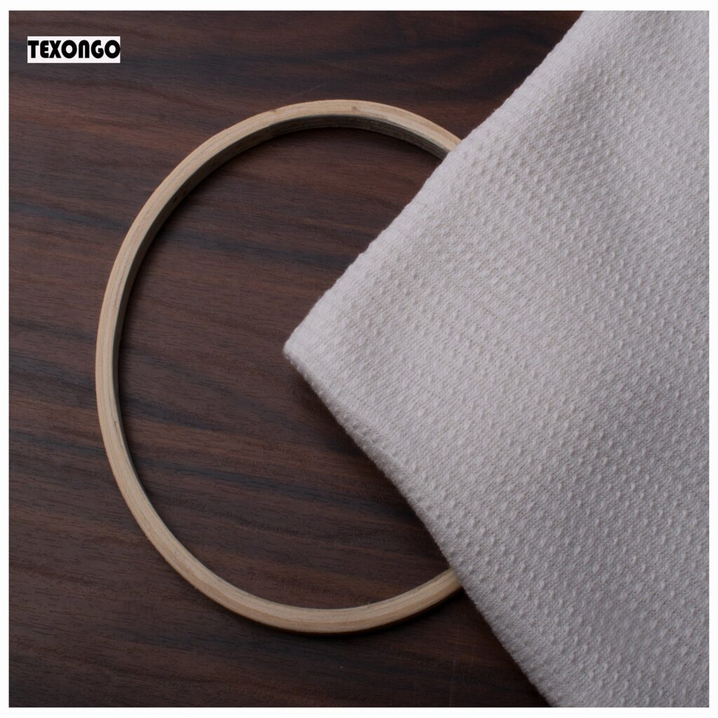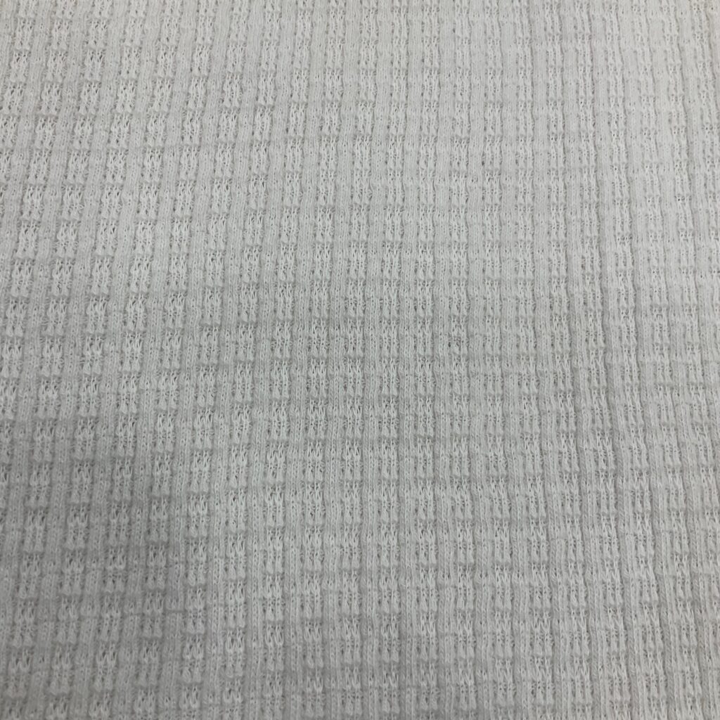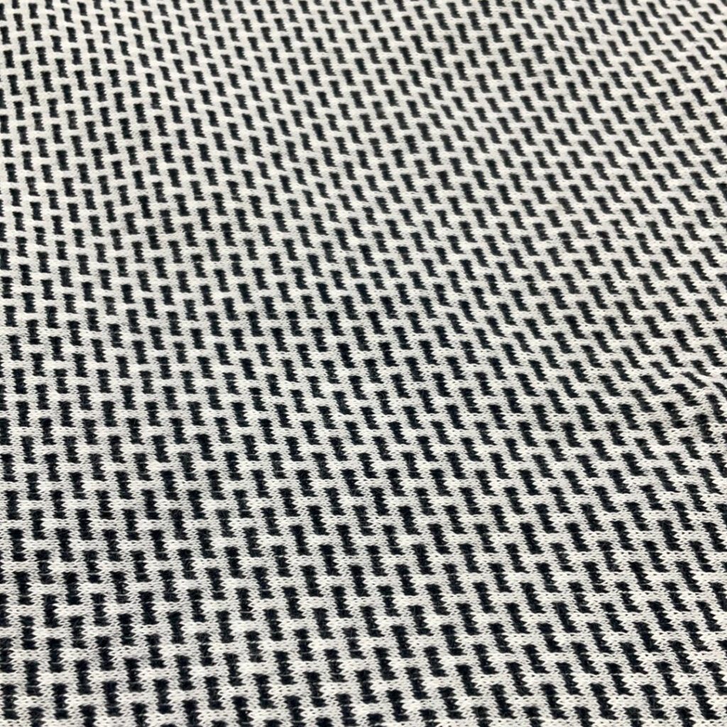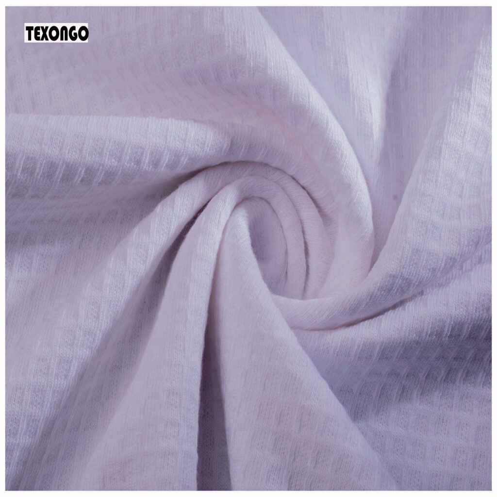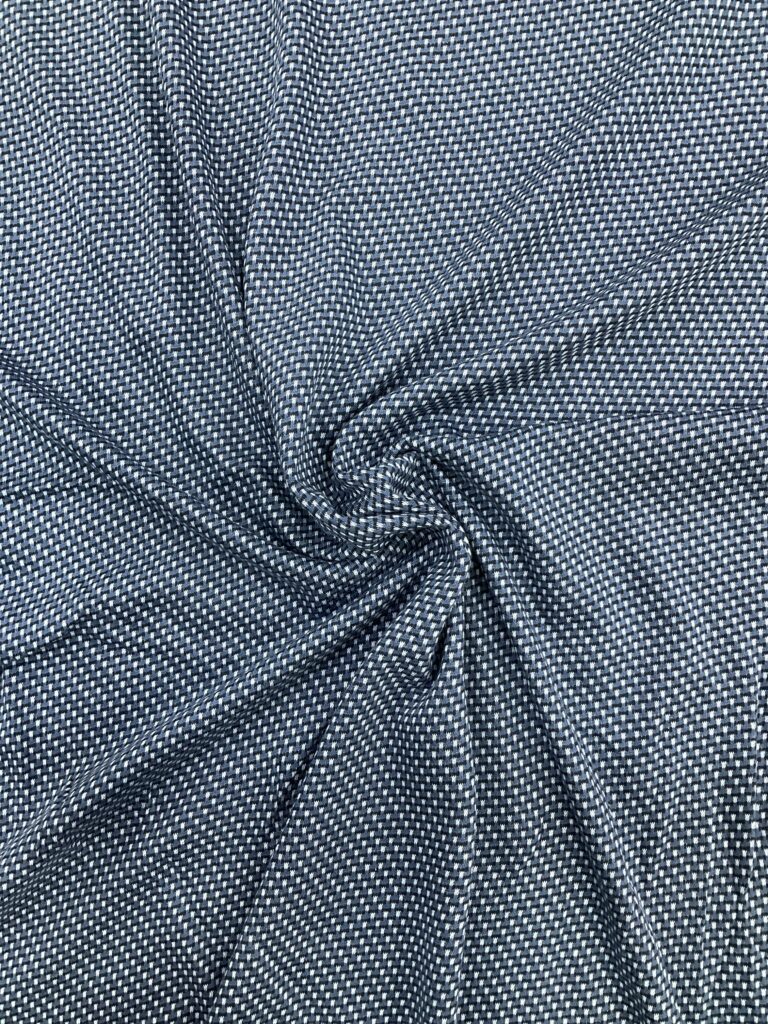 Cotton jacquard is a type of knitted fabric known for its soft, comfy feel and aesthetic, The textile is also notably stretchy while traditional cotton doesn’t have this flexibility, the knitting technique gives it an elastic quality, even without blending synthetic fibers like elastane or spandex. It is soft, stretchy, naturally absorbent, breathable, and wrinkle-resistant.