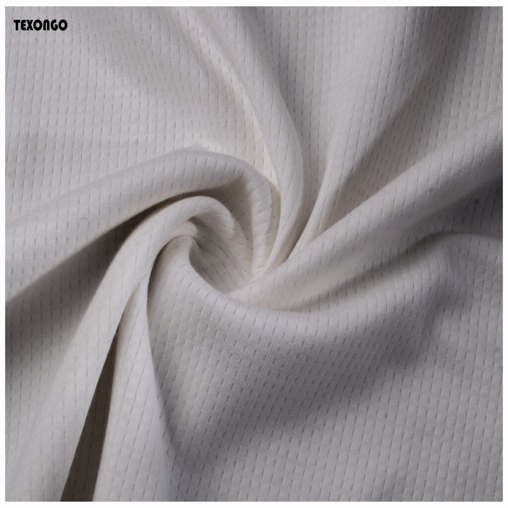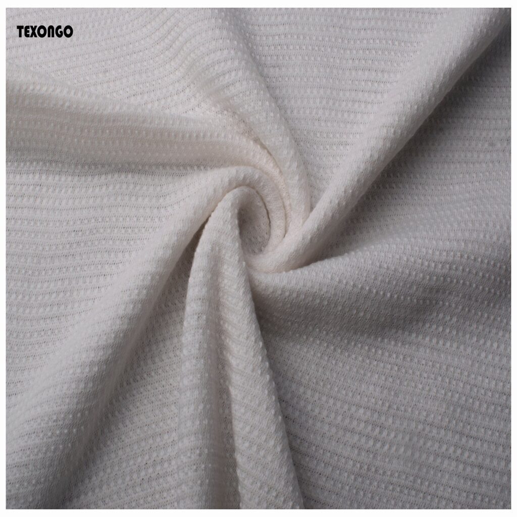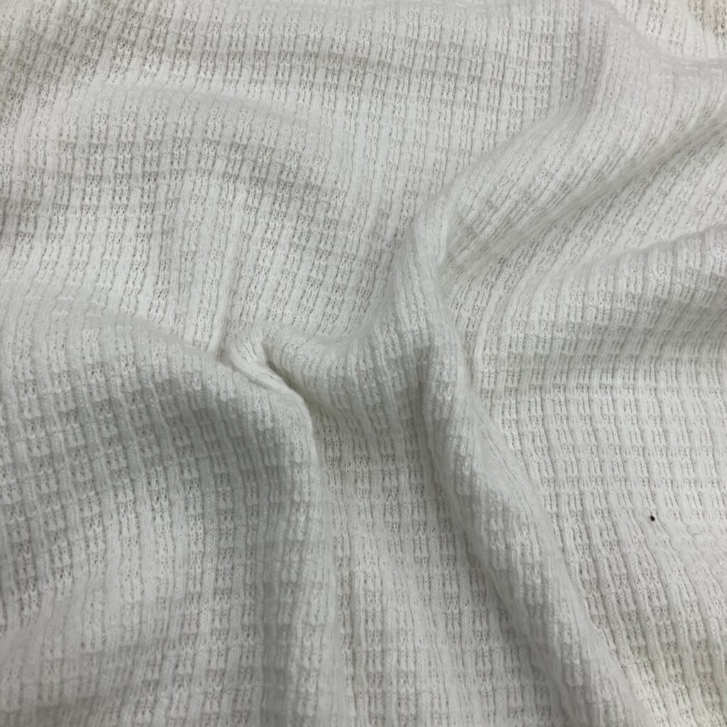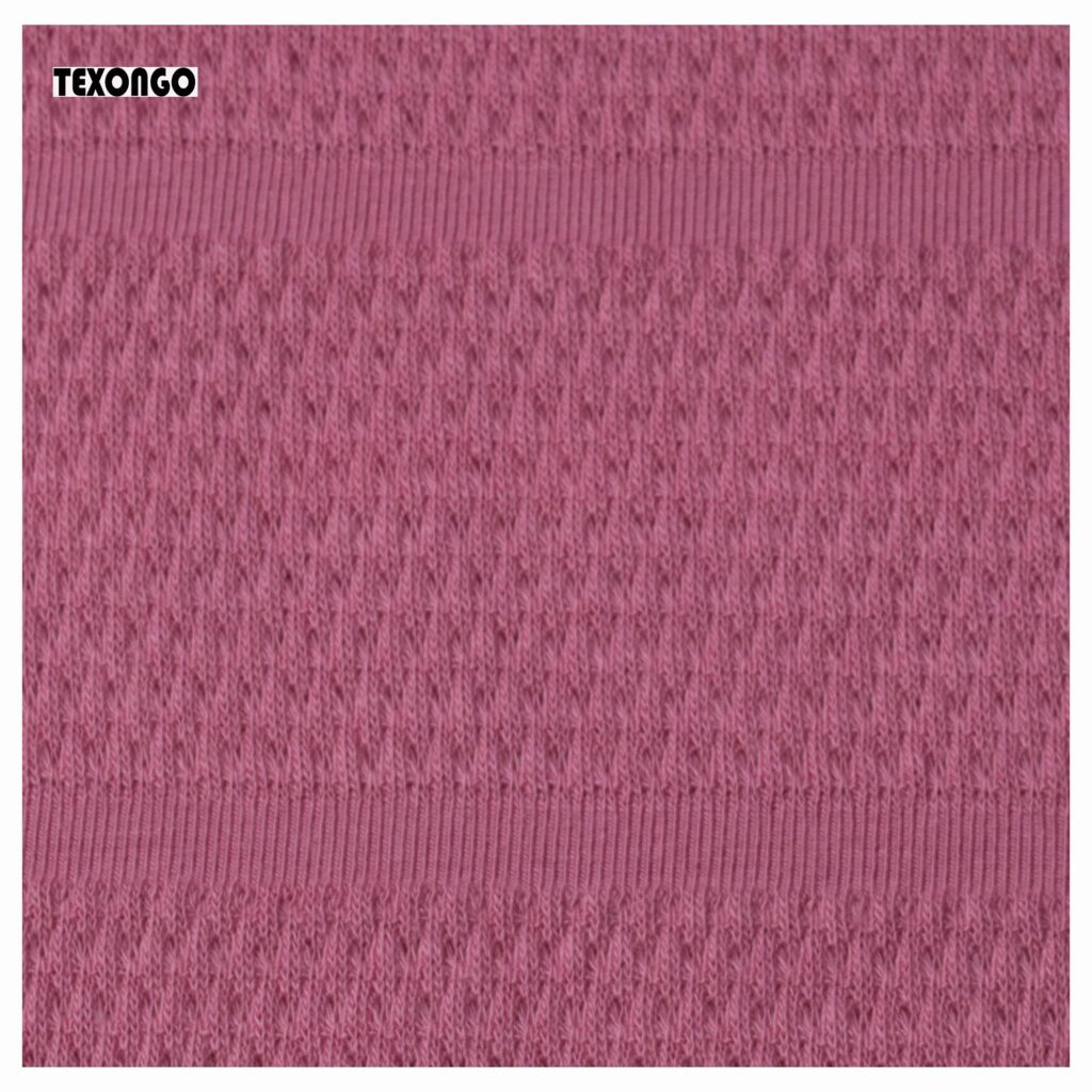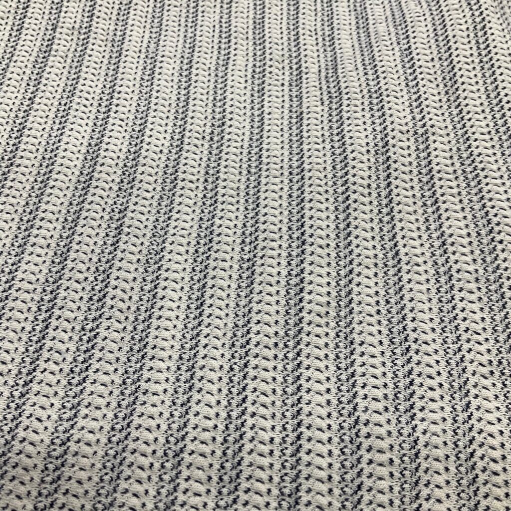 Cotton jacquard is a type of knitted fabric known for its soft, comfy feel and aesthetic, The textile is also notably stretchy while traditional cotton doesn’t have this flexibility, the knitting technique gives it an elastic quality, even without blending synthetic fibers like elastane or spandex. It is soft, stretchy, naturally absorbent, breathable, and wrinkle-resistant.