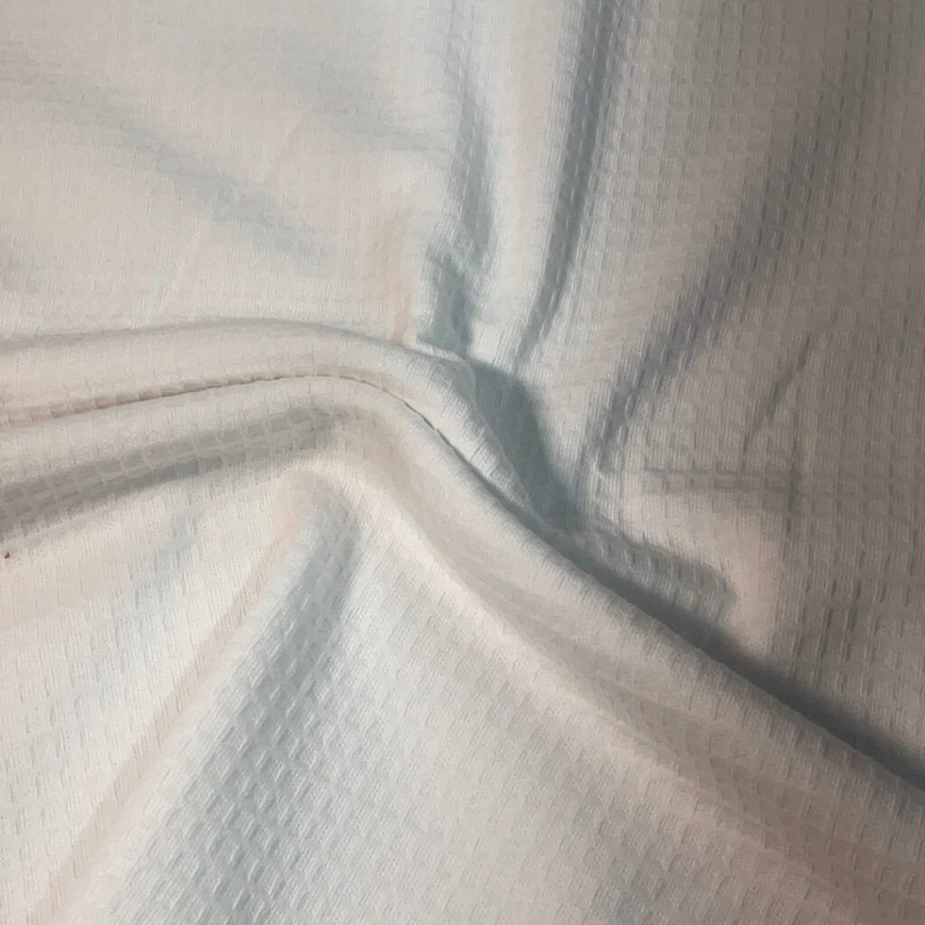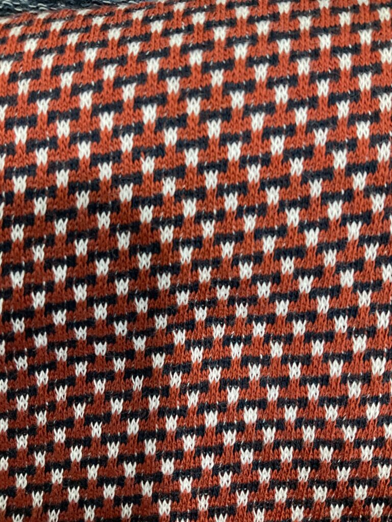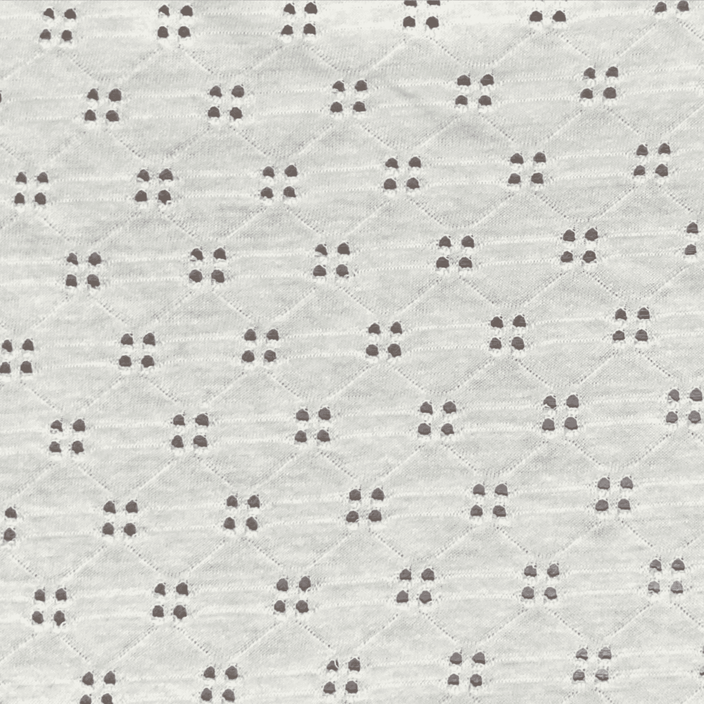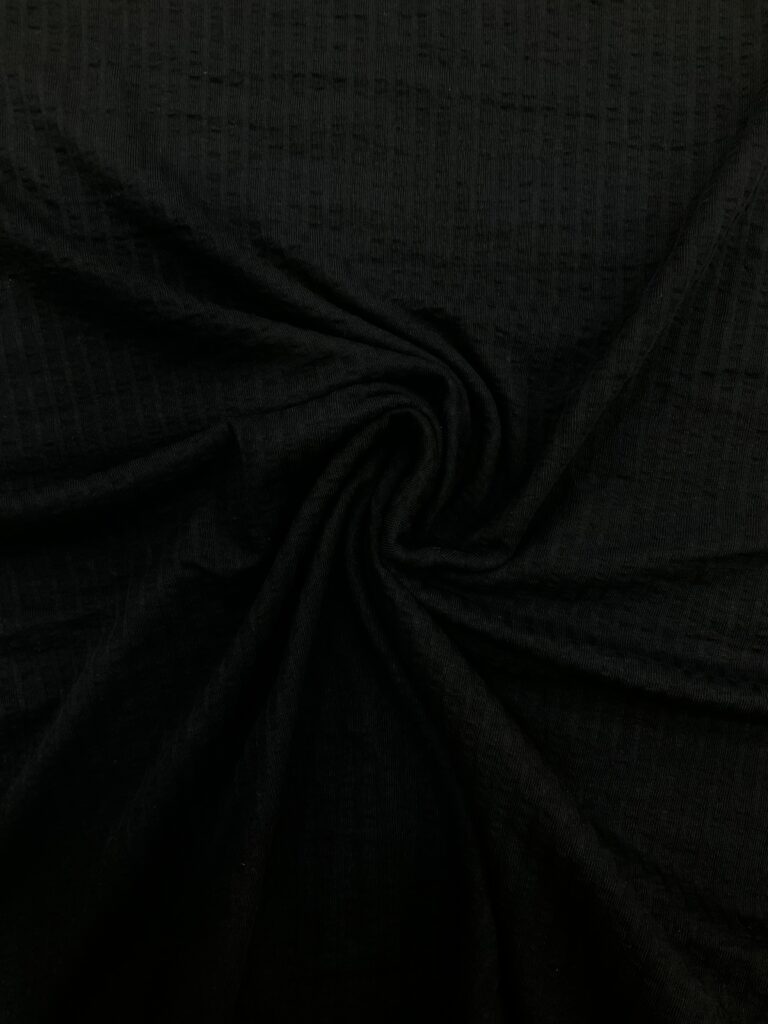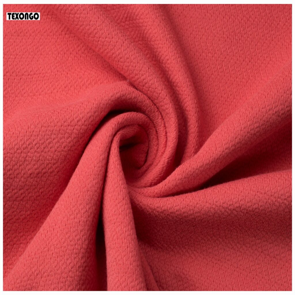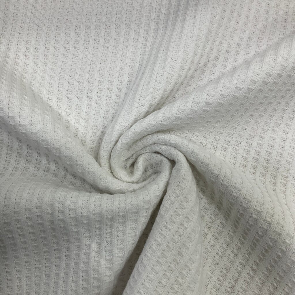 Cotton jacquard is a type of knitted fabric known for its soft, comfy feel and aesthetic, The textile is also notably stretchy while traditional cotton doesn’t have this flexibility, the knitting technique gives it an elastic quality, even without blending synthetic fibers like elastane or spandex. It is soft, stretchy, naturally absorbent, breathable, and wrinkle-resistant.